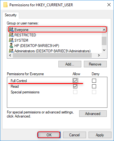 [HKEY_CURRENT_USER] y haz clic derecho en Permisos .